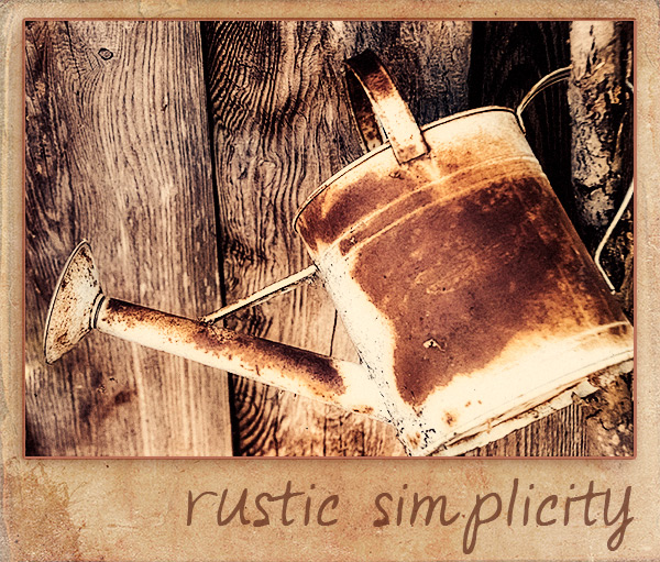 This week’s challenge at Arttechniquesdigital is “In My Own Backyard.” I took some photos yesterday, one of which is this old watering can. My husband likes to place old tools and other rustic things around the yard. Finding beauty in the commonplace…