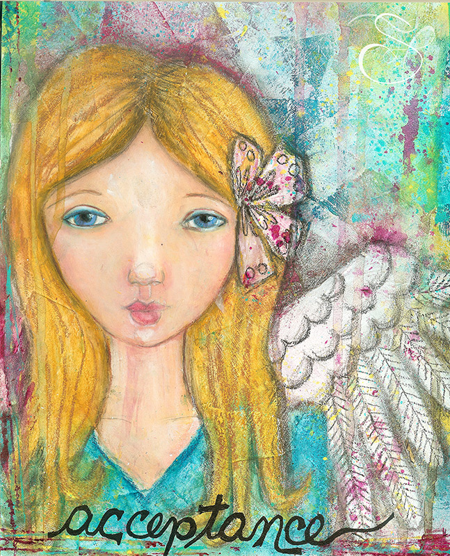 I started doing Tamara LaPorte’s Life Book class this week. I wanted to have weekly lessons to keep me accountable to get into my studio and use some of the wonderful art supplies I have accumulated (and still am accumulating!). Our first project was to create an image (Tamara teaches how to create lovely face images) that can represent my word of the year. I had a hard time deciding between Contentment and Acceptance and finally went with Acceptance. I am willing to be willing to be more accepting of who I am in Christ and that He has created me to be creative and introspective and that is ok. So often in church culture, the assertive extroverts who make the most noise are the ones people look up to, but I am learning that the quiet ones often have the most to say that is worth listening to. Studying Daniel this “semester”, I admire his God-given qualities of humility, wisdom, patience, and a heart at peace even in the midst of the most trying circumstances. Contentment/acceptance is a learned trait. I want to be like Paul and be able to say with assurance, “…for I have learned, in whatsoever state I am, therewith to be content.” Philippians 4:11. And Paul had a lot more to contend with in his life than I do, that’s for sure! I like how the drips make some smudginess; that is a good representation that life is sometimes messy, and I make mistakes, but the final picture will be beautiful. “Being confident of this very thing, that He who has begun a good work in you will complete it until the day of Jesus Christ.” Philippians 1:6