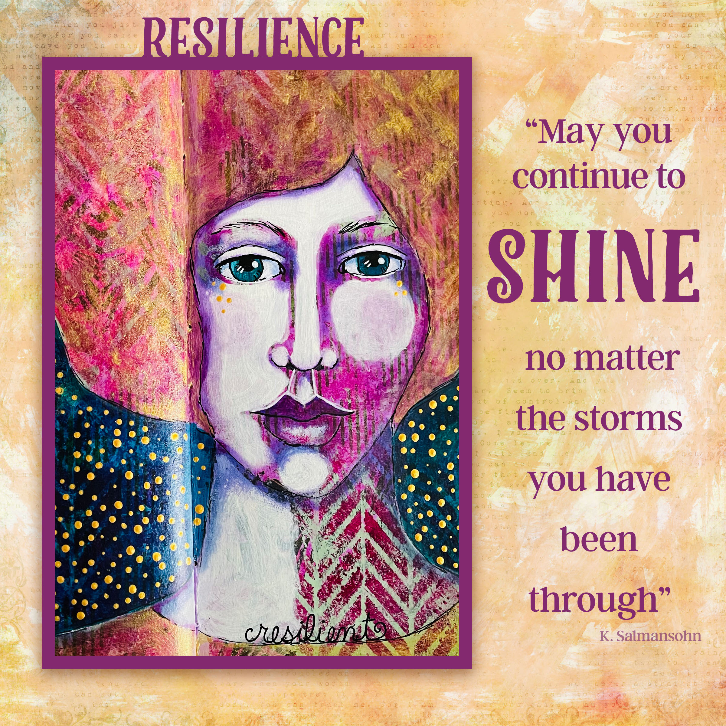 Image from an art journal spread, “Dream in Gold.” From a partial poetry quote by Shiloh Sophia McCloud- “Do dream in gold.. Someone has to… Why not you?”