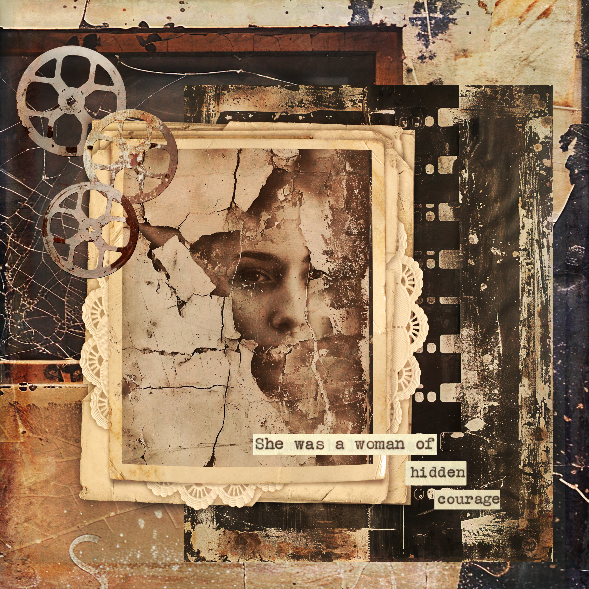 The art is from a work in progress for Ivy Ivette Newport‘s August Studioworks lesson wherein we were to create a self-portrait using collage. The background is the first layer that I photographed which was done with graphite with my non-dominant hand using the photo taken that I used as the main image in the collage. The smaller inset is from the work in progress meaning I am not done with it yet. I photographed my piece and then brought it into Photoshop where I played with quite a few different filters from Filter Forge. This filter is called Freehand Hatch 1. As an older woman it is always a challenge to want to work with one’s own image. Unexpectedly found this an interesting process even so.