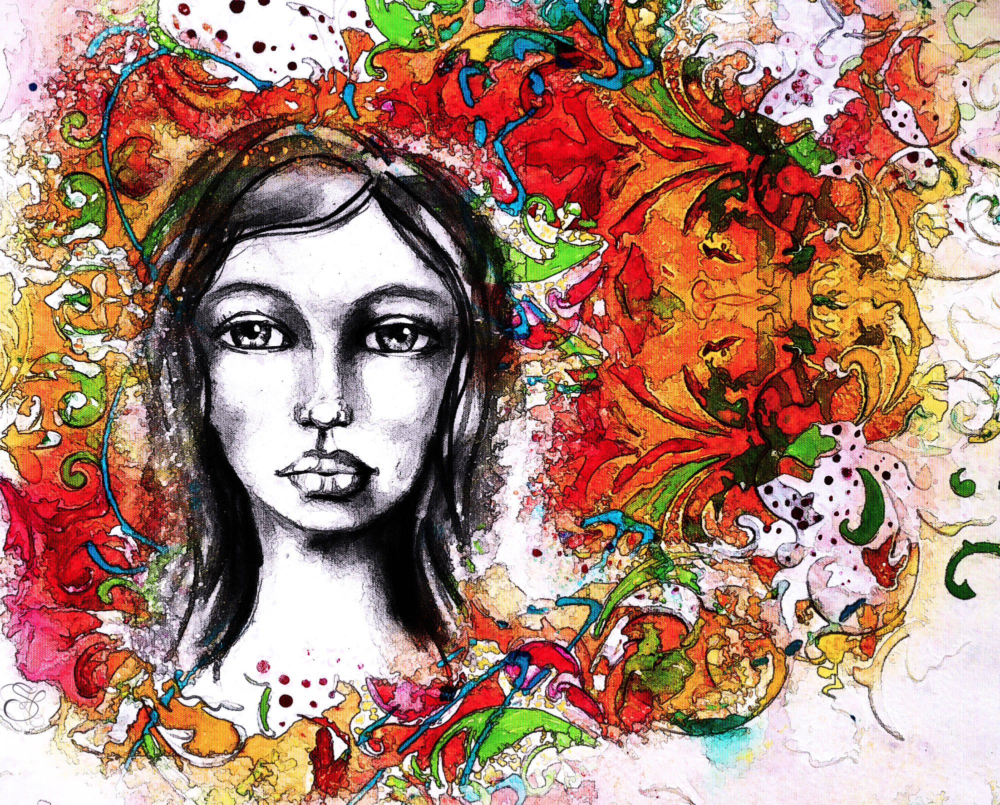 Inspired by a lesson by Kara Strachan Bullock’s Let’s face It class from 2016. Finally got a chance to complete this so I can tackle 2017’s lessons. The writing on the left in both black and white is Lord Byron’s poem “She Walks in Beauty.” A few words of my own on the right with my signture.