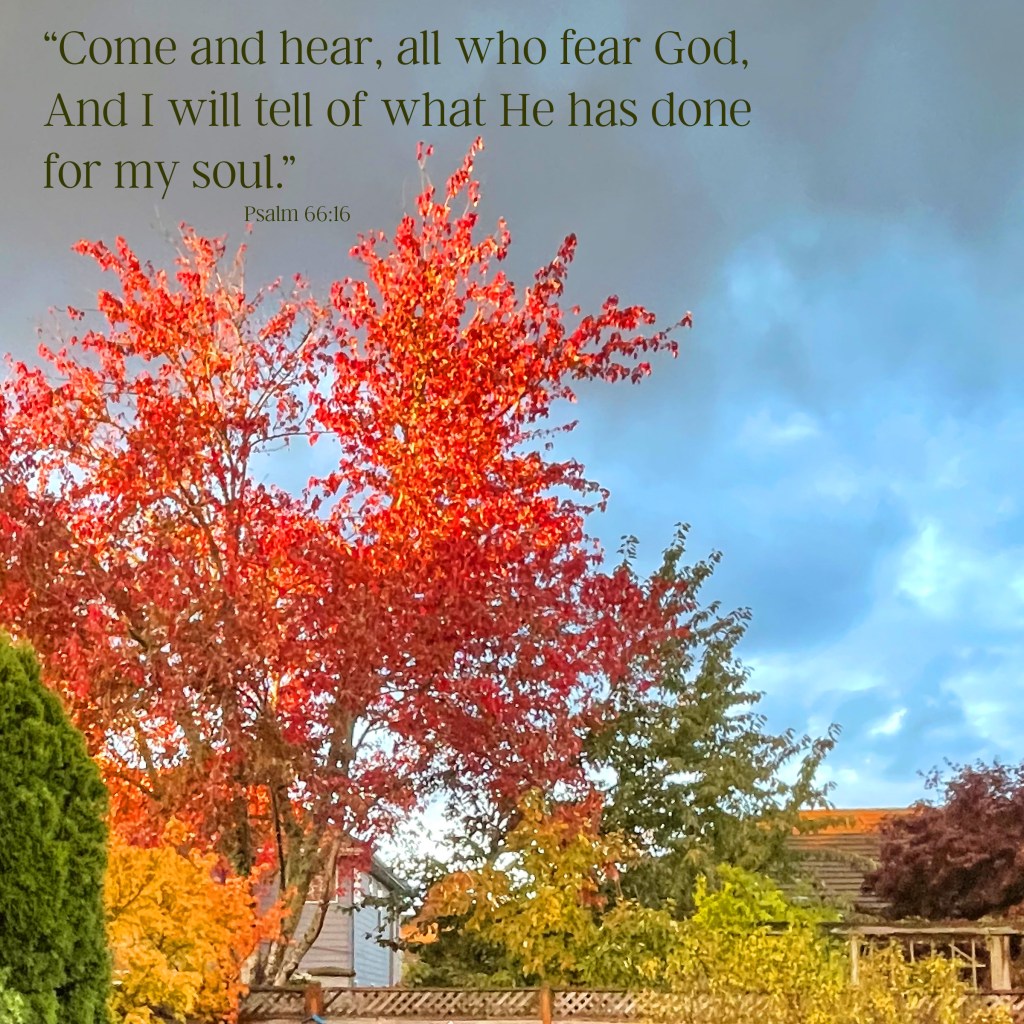 Daily Graces 2024 #986 #147 October 29, 2024 ~ sherresartzone ~ Leave a comment Psalm Series #66. Just a bit of the autumn beauty seen from our home.