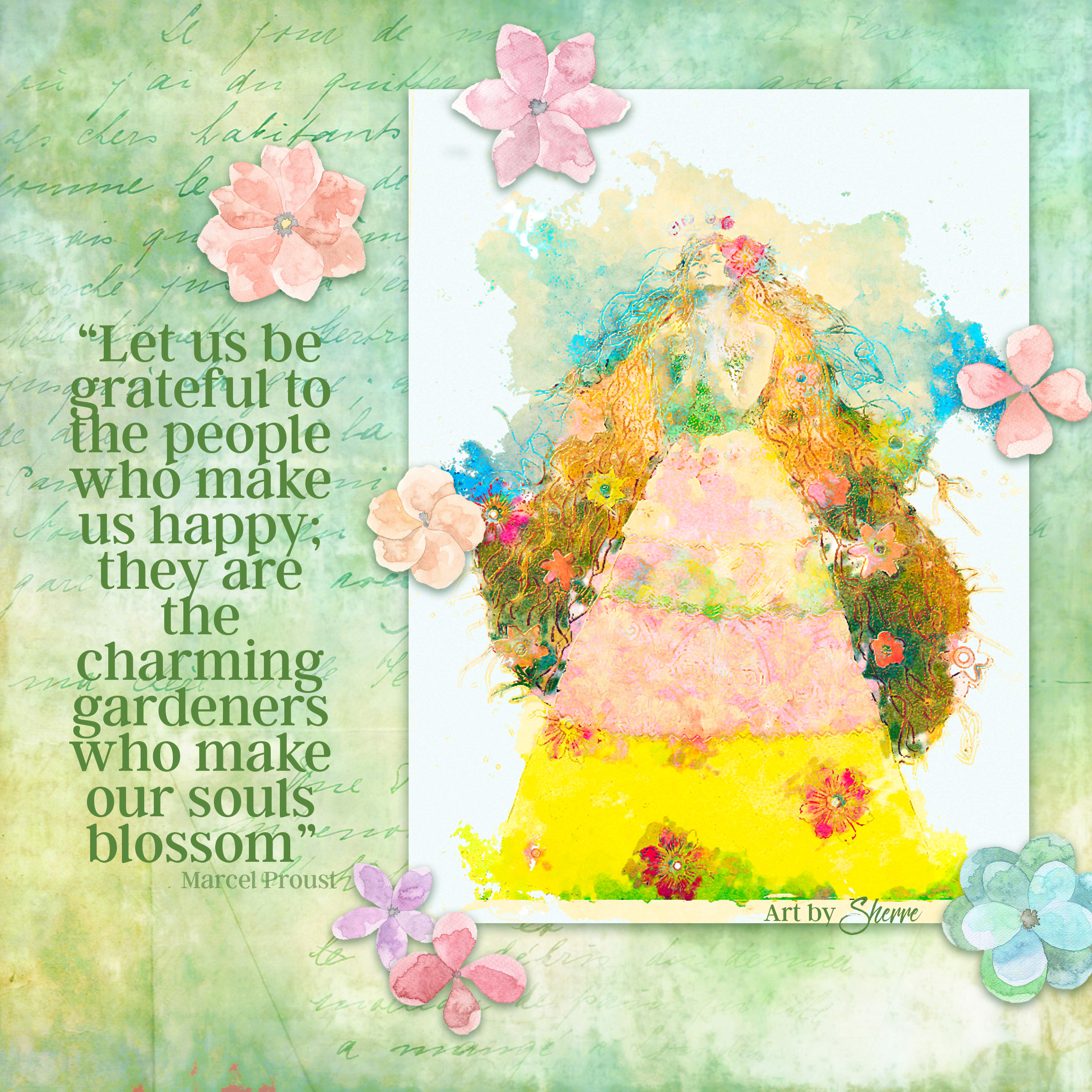 Background created in Photoshop; background texture by Kim Klassen. Art by me.