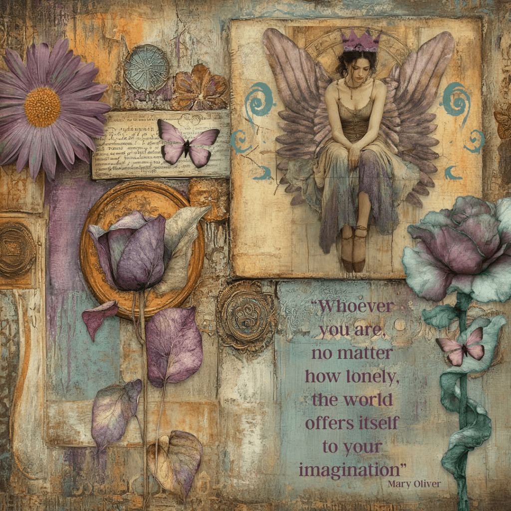 Daily Graces 2025 #1179 #168 August 26, 2025 ~ sherresartzone ~ Leave a comment August Poetry Series. Author of poem unknown. Elements created in Midjourney. Texture from AWAKE lesson 1 by 2 Lil Owls.