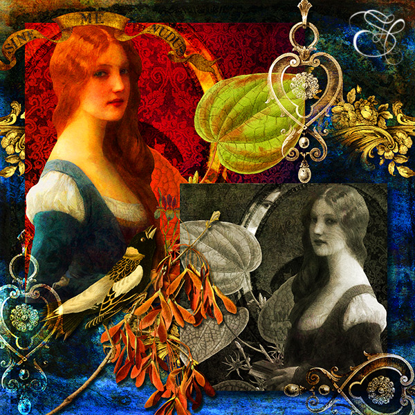 This piece was created for the Arttechniquesdigital Yahoo group’s November Artist-Inspired Challenge. Angi Sullin and Silas Toball create some magical digital montages. This piece is a loose interpretation of one of their works. I used an image from my image stash, and used elements from Deviant Scrap- Holliewood and itKuPilli.